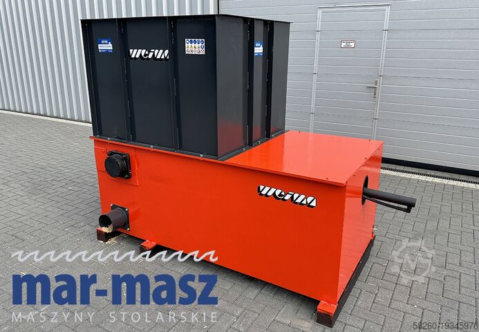 Toestand: gebruikt, Bouwjaar: 2025, Speciale prijs - tentoonstellingsmachine Garbsen Ons machineconcept WL 6 De Weima high-performance shredders met hun flexibele toepassingsmogelijkheden kunnen alle soorten houtmaterialen (hardhout, zachthout, spaanplaat, MDF-materialen, multiplex, fineerresten, enz.) verwerken tot houtsnippers en bereiken een enorme volumereductie van volumineuze materialen. Functie: De machine is uitgerust met een grote invoertrechter en kan worden toegevoerd via een transportband of met de hand. Deze invoertrechter kan worden aangepast aan individuele behoeften en garandeert een continue en kosteneffectieve materiaaltoevoer zonder handmatige tussenkomst. De hydraulisch gestuurde sleden geleiden het te versnipperen houtafval naar het snijgedeelte van de rotor en worden automatisch en lastafhankelijk aangestuurd. De interne sleden zijn gemaakt van zeer slijtvaste kunststof (polyamide) en zijn verstelbaar. De hydraulische cilinders zijn cardanisch gemonteerd om zijdelingse krachten op de zuigerbussen te voorkomen. De gepatenteerde en geprofileerde V-rotor van massief staal heeft een diameter van 252 mm en werkt met een rotortoerental van 80 - 120 tpm. De concaaf geslepen, agressieve en 4-voudig roterende messen/snijkronen bevinden zich in gefreesde mesgaten op speciale messenrekken. Dit gepatenteerde systeem garandeert, door voor het eerst de snijspleet tussen het contrames en de rotor te verkleinen, een hoge doorvoer, een laag energieverbruik en een optimale afvoer van het versnipperde materiaal. De onder de rotor bevestigde zeef bepaalt de snippergrootte (10 - 100 mm). Een hydraulisch te openen zeefkorf is op aanvraag ook leverbaar. De kracht wordt via V-snaren van de elektromotoren overgebracht op een zwaar gedimensioneerde tandwielkast die aan één zijde van de rotoras is bevestigd. Nauwkeurig snijden met hoge doorvoer met de geprofileerde V-rotor De speciaal door WEIMA ontwikkelde V-rotor is universeel inzetbaar en gemaakt van massief materiaal. De agressieve materiaaltoevoer met maximaal twee messenrijen garandeert een hoge doorvoer met een laag vermogensverbruik. De rotor kan worden uitgerust met gehard stalen snijmessen met snijkanten van 30 mm en 40 mm. Deze kunnen bij slijtage meerdere keren worden gedraaid, wat de onderhoudskosten drastisch verlaagt. Intuïtieve bediening dankzij Siemens PLC-besturing met touchdisplay Om ervoor te zorgen dat de elektronica optimaal op de machine is afgestemd, ontwerpen, bouwen en bedraden wij onze schakelkasten zelf. Wij gebruiken uitsluitend hoogwaardige componenten - bijvoorbeeld van Siemens of Rittal. Intuïtief bediende touchoppervlakken garanderen snelle aanpassingen. Functies zoals het instellen van de schuifcyclus of stop zorgen voor een hoge doorvoer. De ingebouwde overbelastingsbeveiliging voorkomt bovendien machinefouten. Technische specificatie WL 6 Toevoeropening 800 x 1.250 mm Trechterinhoud 0,9 m³ Rotorlengte 800 mm Rotordiameter 256 mm Aandrijfvermogen 22 kW Rotortoerental 90 tpm Max. Aantal messen: 42 Type en grootte van de messen: concaaf / 40 x 40 mm, snijkronen Zeefperforatie 10-60 mm Lak WEIMA Standaard RAL 2022 / 7016 Stroomverbruik 400 V +/- 5% / 50 Hz Gewicht ca. 1.600 kg Inbegrepen: - Schakelkast* (Rittal) inclusief elektrische besturing (Moeller / Siemens) en S